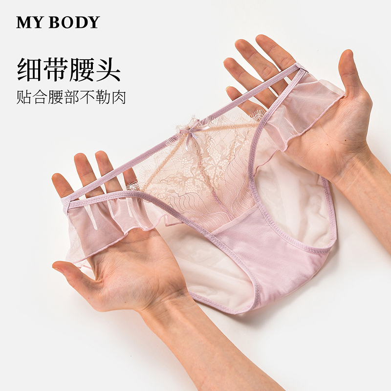 3件159|商场同款MYBODY内裤女棉质底裆性感纯欲蕾丝禁欲三角短裤