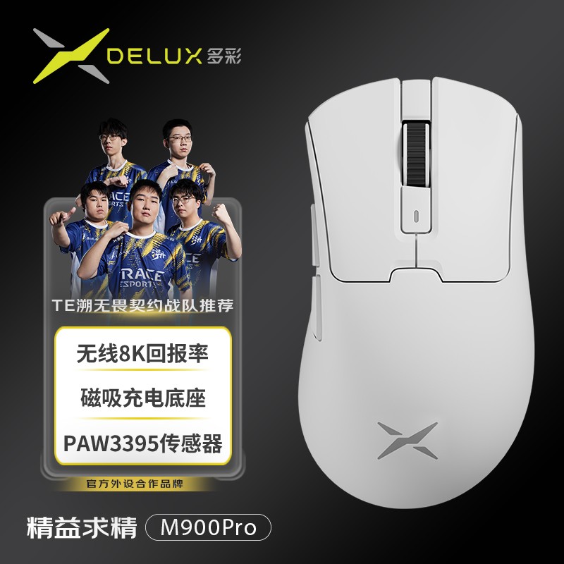 Delux多彩M900Pro电竞游戏8K无线鼠标磁吸充电性价比高网吧外设