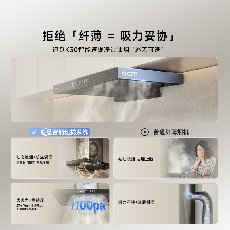 【重磅新品】追觅K30超薄抽油烟机厨房家用大吸力抽风吸油机官方