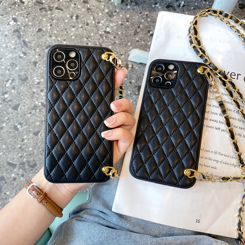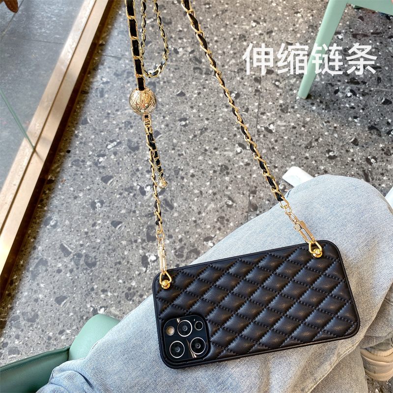 适用苹果15promax手机壳小香风伸缩链条iphone14斜挎可调节12高档皮纹13保护套xr网红女款xs背带11p挂绳x潮牌