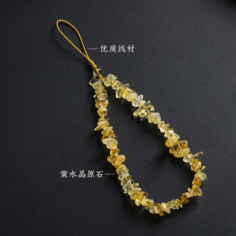 天然黄水晶手机挂绳女招财水晶碎石手机壳手腕挂饰手机链挂件吊坠
