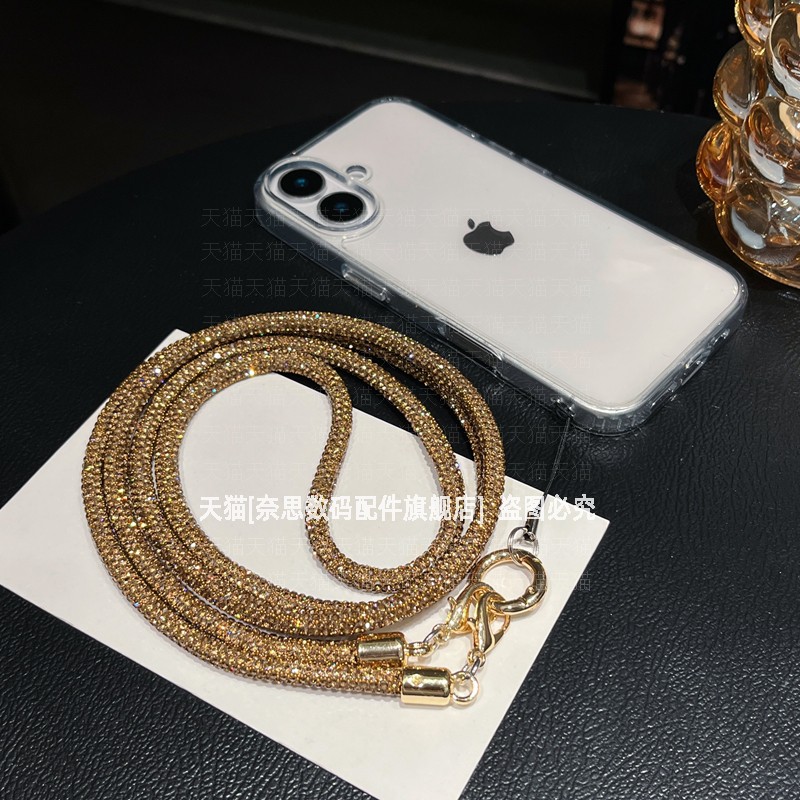 闪闪的手机挂绳链富家千金奢华闪钻背带链条斜挎可背挂链防摔链子防丢精致水钻满钻千钻肩带挂件网红潮垫片壳