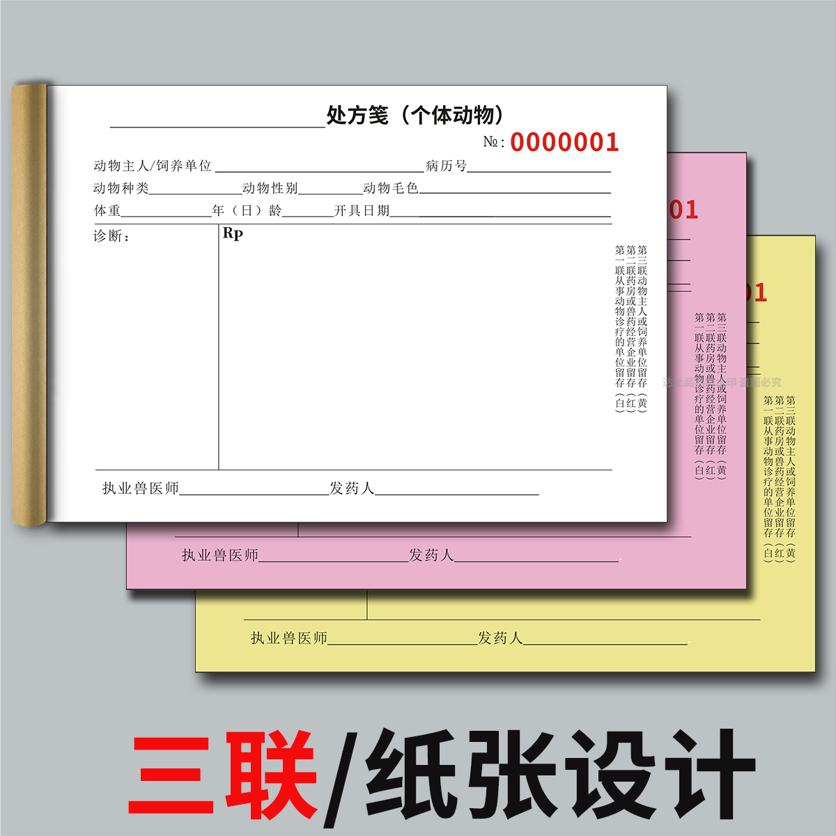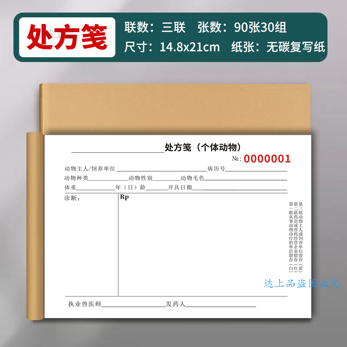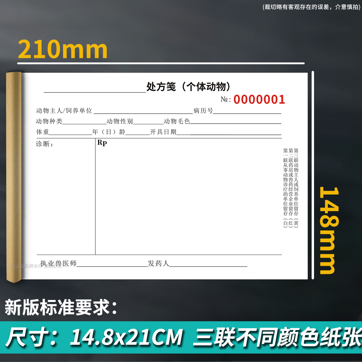 新版A5兽医处方笺动物宠物医院148x210三联处方签门急诊病历本兽用入院病程记录本诊疗病历卡手册档案本定做
