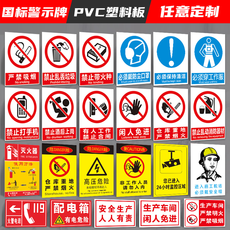 禁止吸烟提示牌严禁烟火警示牌有电危险贴纸生产车间安全标识牌仓库重地警告标志标牌全套套装牌子铝板可定制