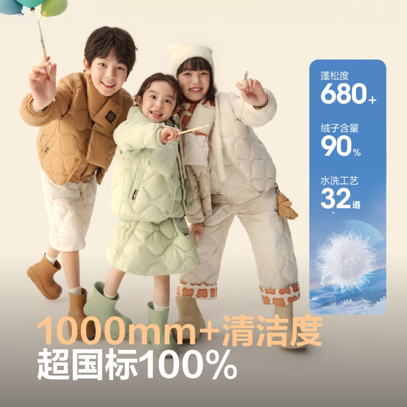 【巴恩风】波司登25新款男女童圆领长袖短外套儿童三防羽绒服轻薄