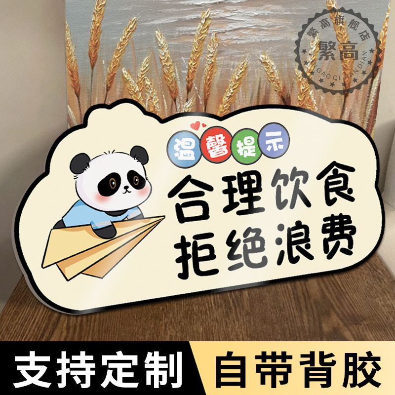 杜绝浪费提示牌珍惜粮食杜绝浪费光盘行动贴纸定制餐厅食堂幼儿园酒店饭店标识墙贴指示牌亚克力防水耐用标牌