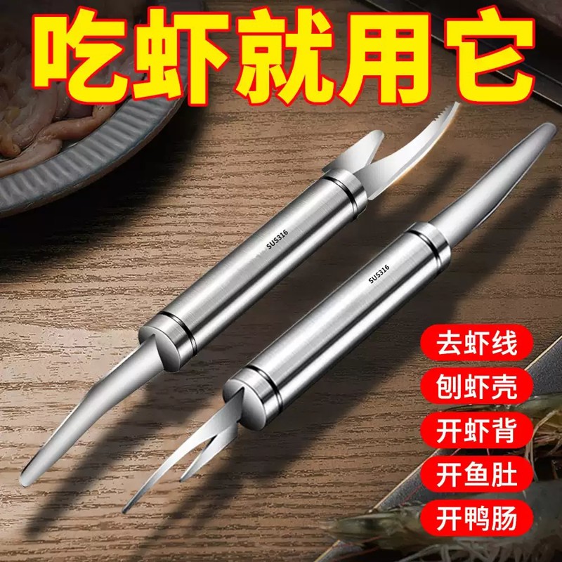316不锈钢去虾线开虾背神器剥虾壳取虾线剔除刀厨房家用304虾线刀