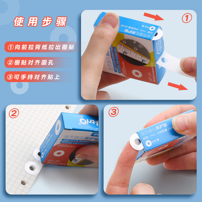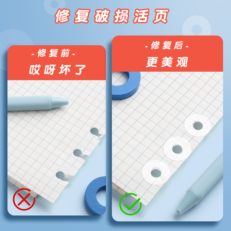 可得优圆孔修复活页孔贴修补贴贴纸打孔保护贴活页夹洞洞贴打孔器活页纸补孔贴活页本加固贴可爱手帐透明活圈