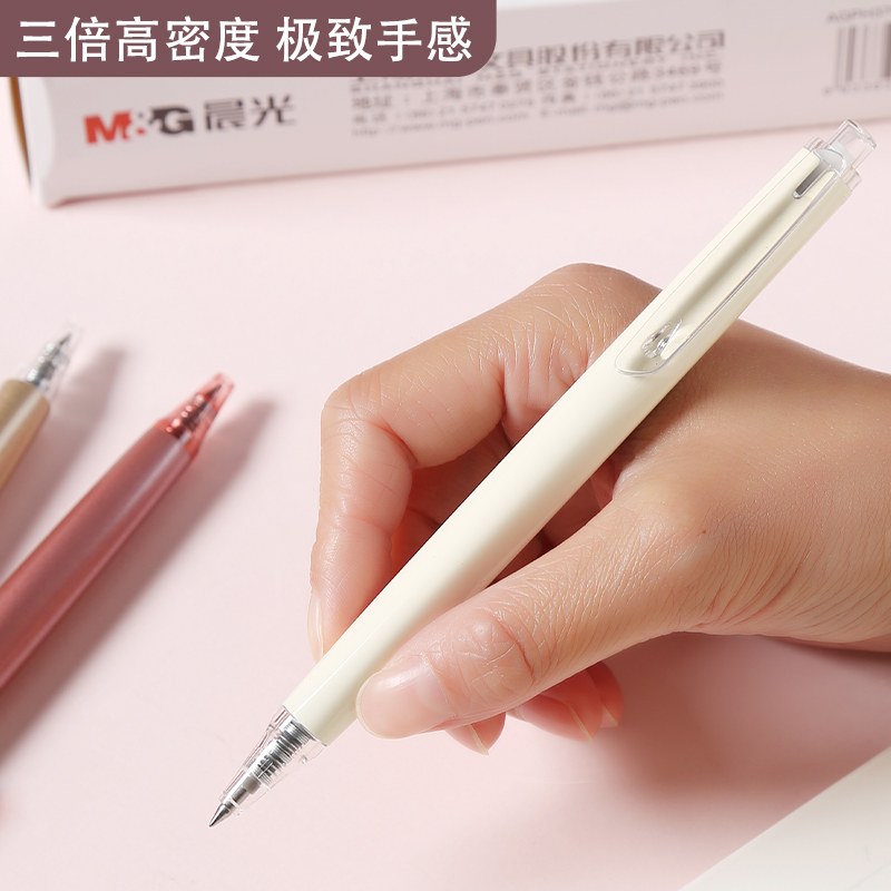 晨光高档三倍密度黑色笔中性笔0.5mm子弹头按动重手感学生书写笔