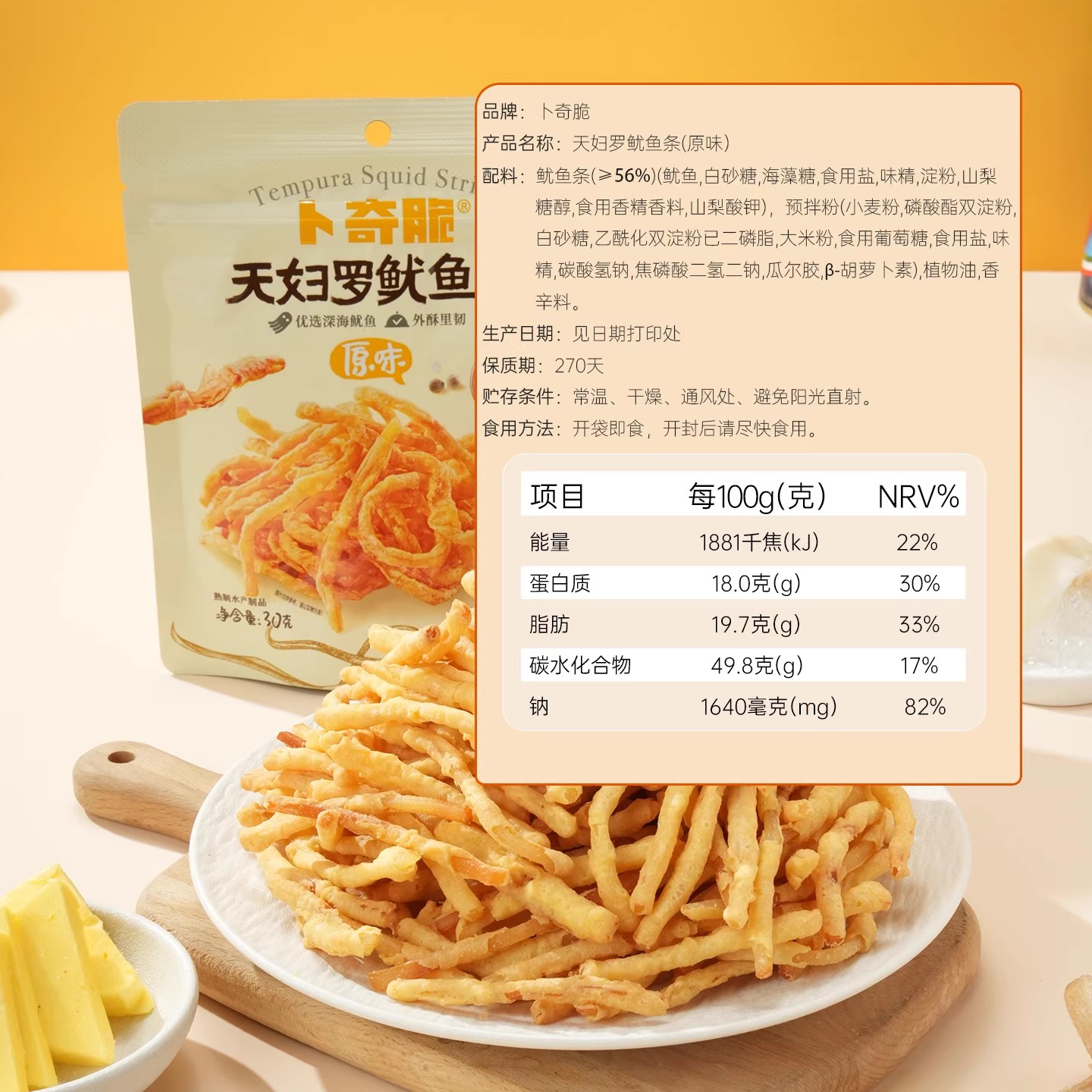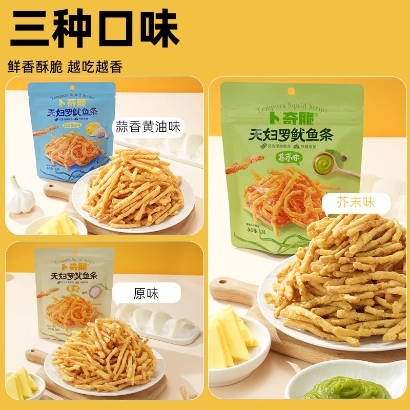 卜奇脆油炸鱿鱼丝原味芥末蒜香零食独立包装开袋即食小吃追剧海鲜