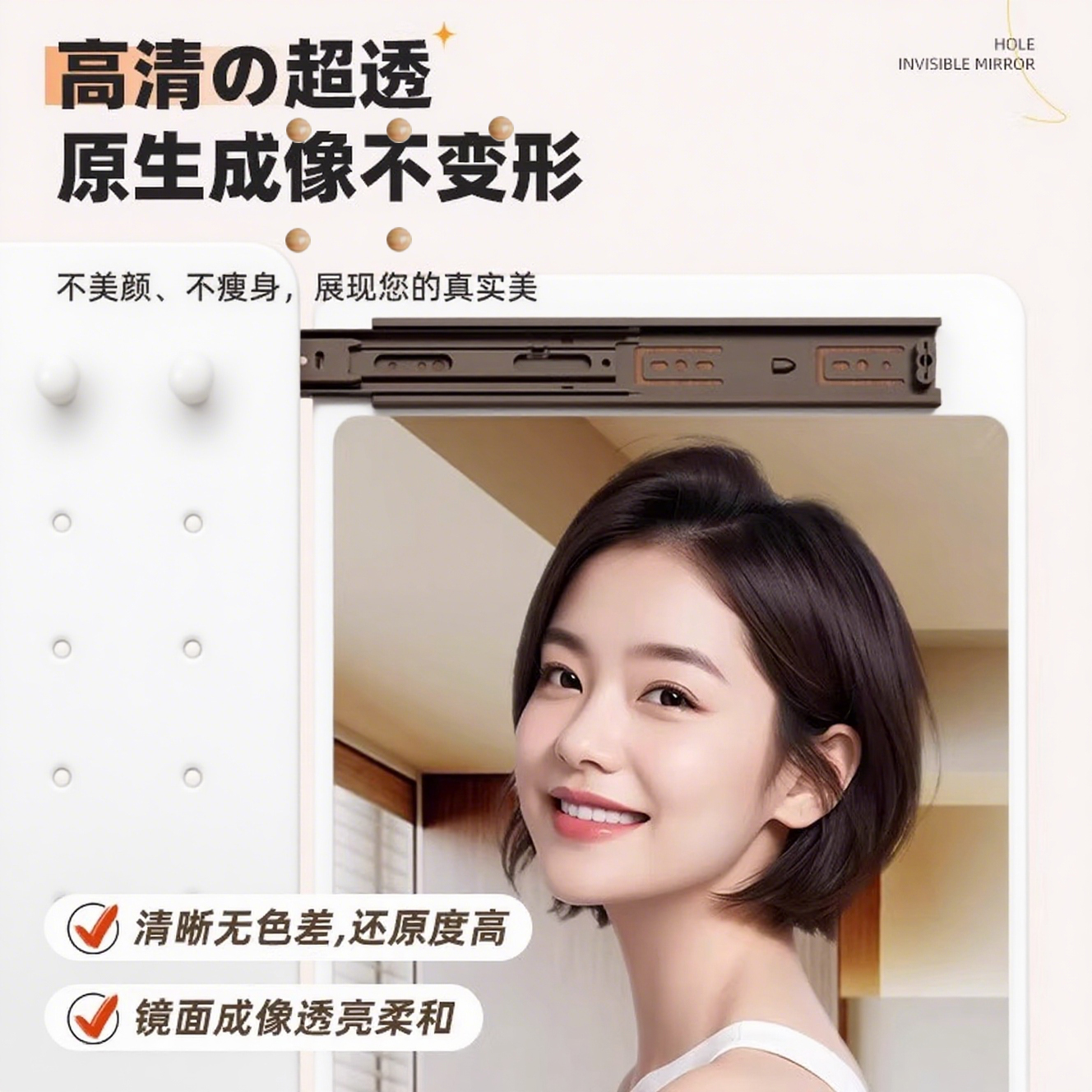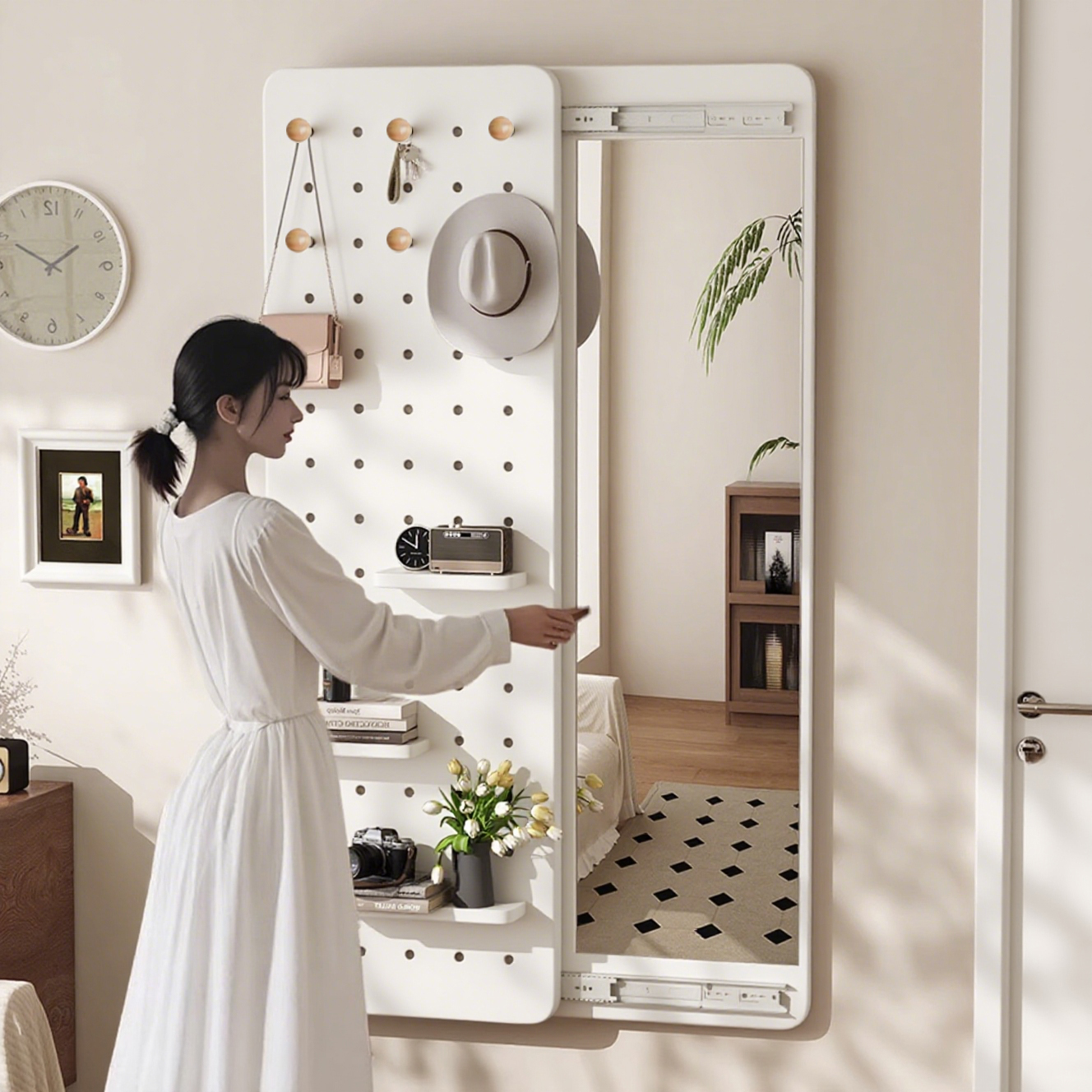 洞洞板隐形穿衣镜隐藏式推拉全身镜子家用可关闭壁挂墙玄关试衣镜