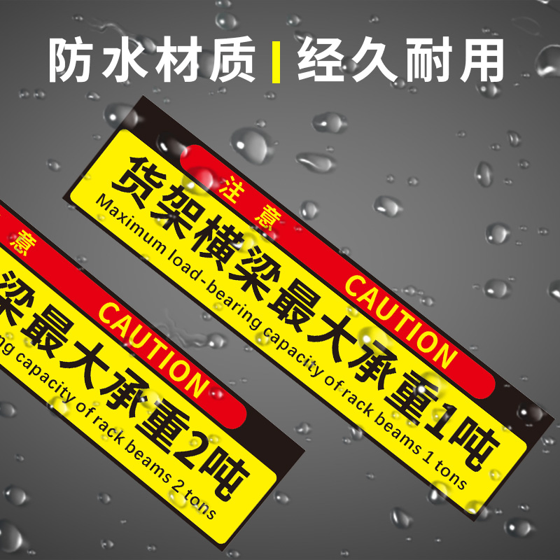 货架横梁最大承重限载1吨标识牌工厂车间仓库货架提示牌子pvc板户外背胶铝板反光膜墙贴贴纸标牌定做标语定制