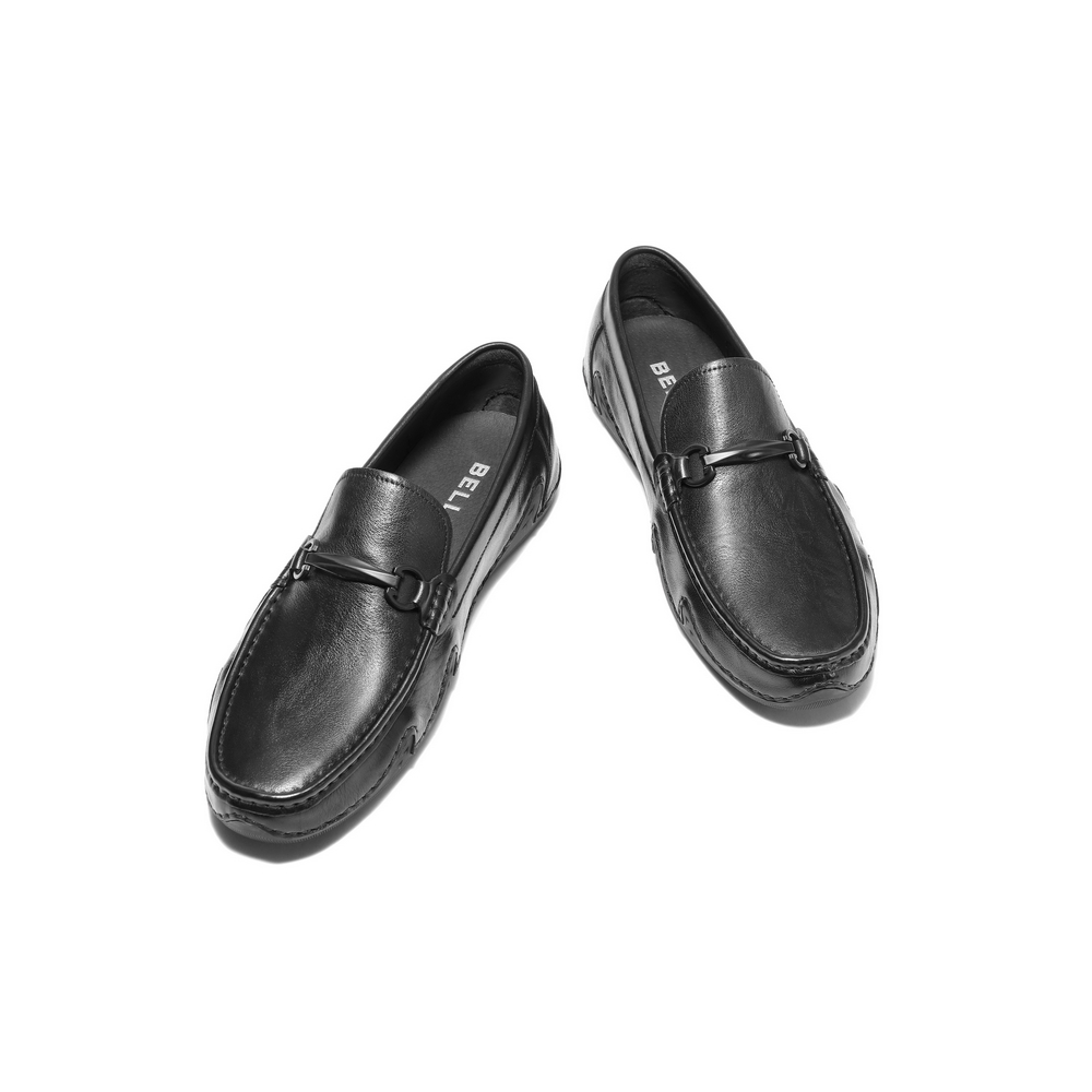 百丽男鞋一脚蹬休闲豆豆鞋025春新牛皮革套脚商务乐福鞋A1818AM5