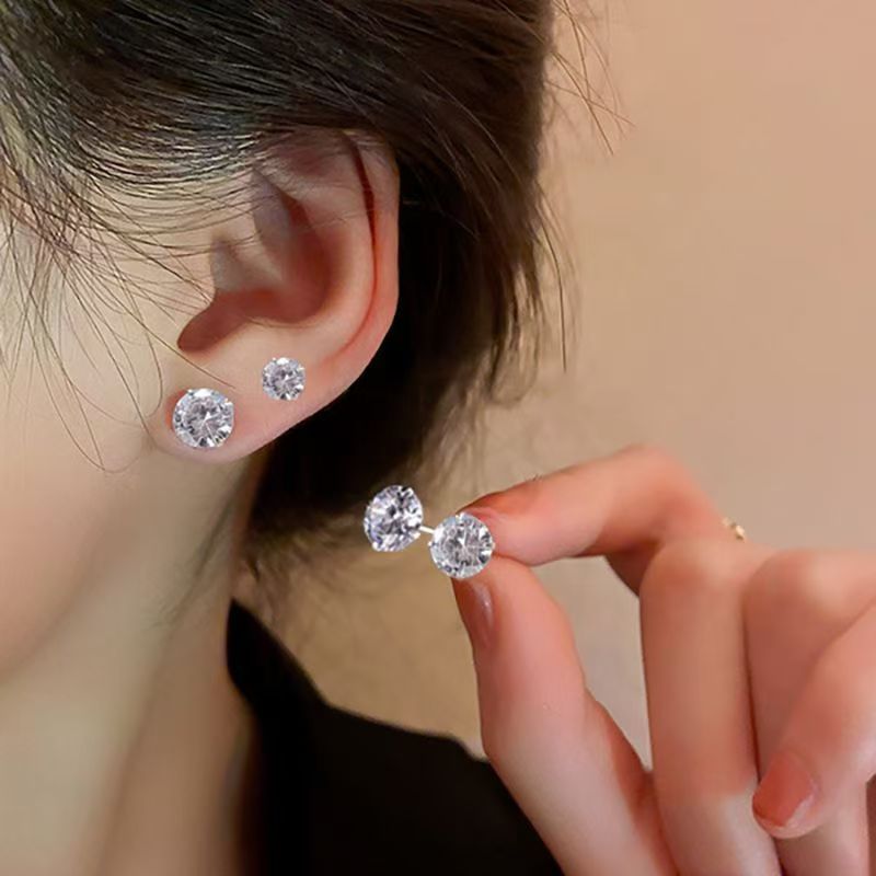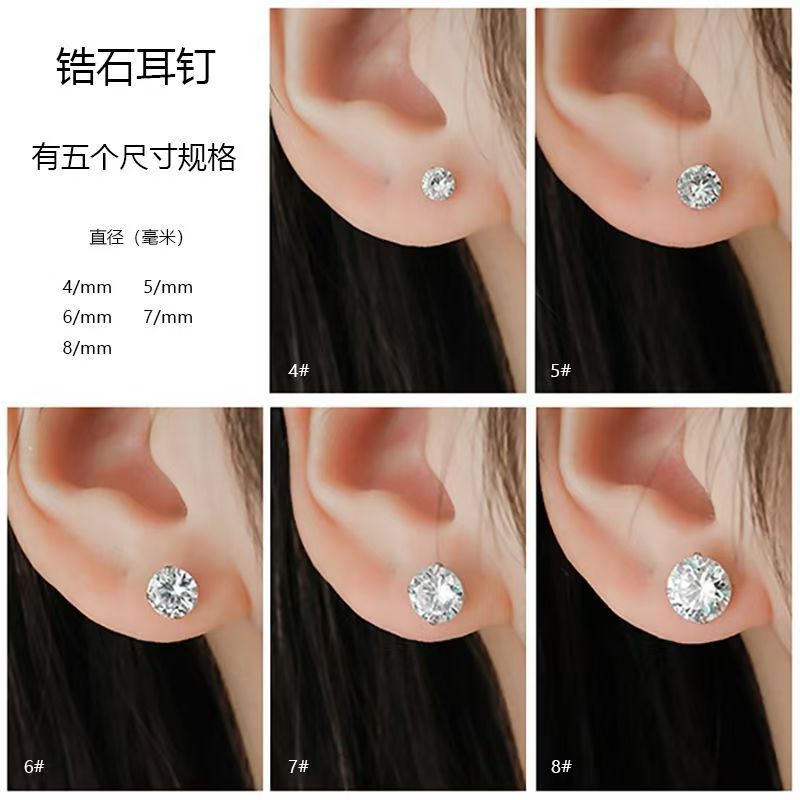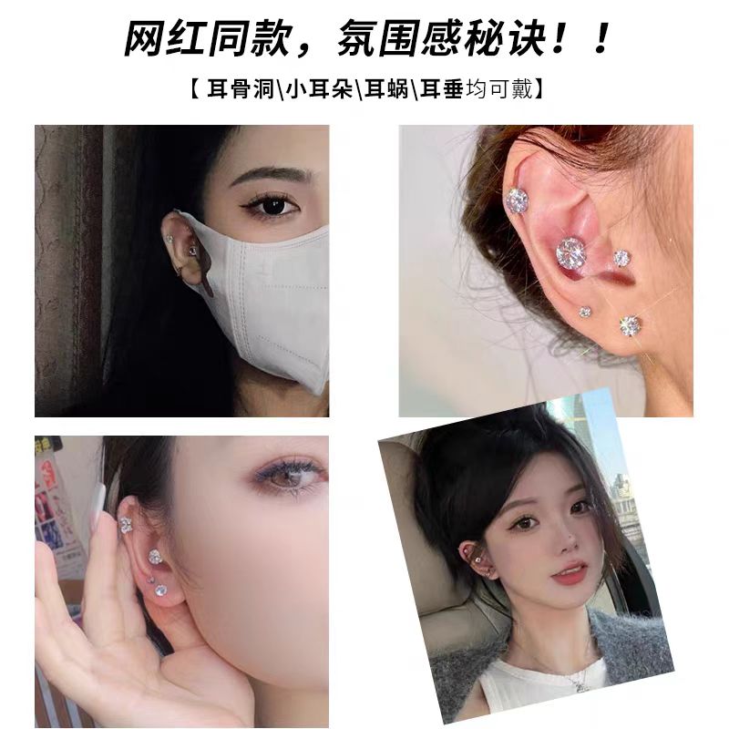 【医用级双头锆石钛钢耳钉】钻石螺丝耳骨高级耳环防过敏爆款耳饰