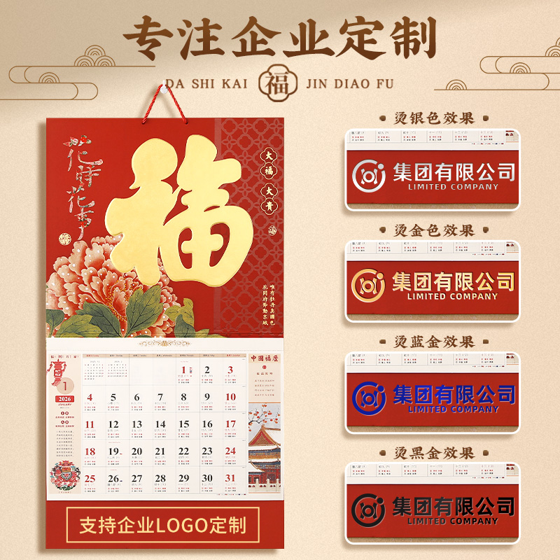 2026年挂历新款高端福字吊牌挂历马年新年创意中国风家用大号挂墙式手撕日历一月一张记事月历公司广告定制