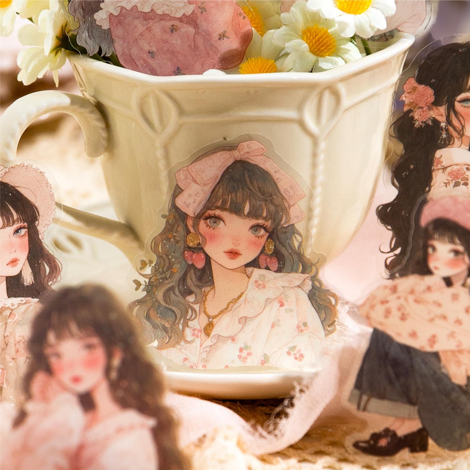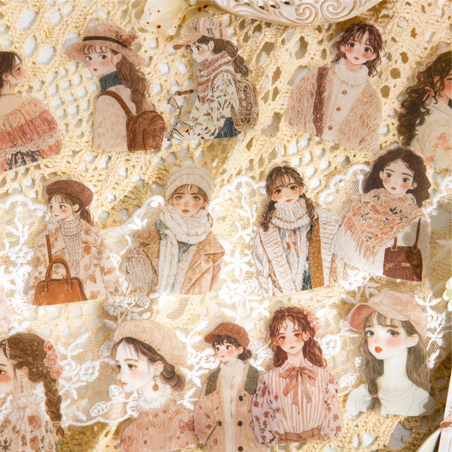 绝版心动PET贴纸包可爱女孩人物造景装饰手帐贴画素材基础拼贴DIY