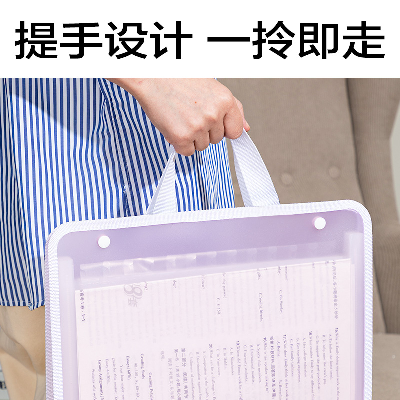 得力觅光系列风琴包拉链袋试卷收纳袋大容量手提试卷收纳资料整理分类收纳包