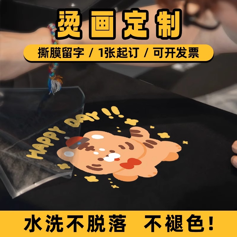 热转印贴纸uv转印贴定制衣服logo烫画无纺布料热感压标识T恤图案丝印花不干胶防水商标签布艺uv水晶标贴打印