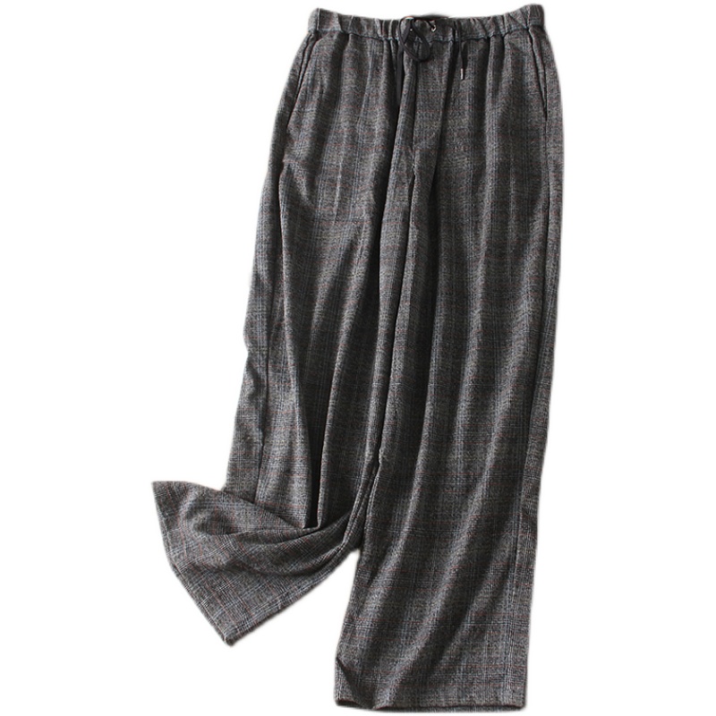 炒鸡好穿!日单~复古文艺格纹高腰直筒阔腿裤休闲裤女显瘦拖地裤