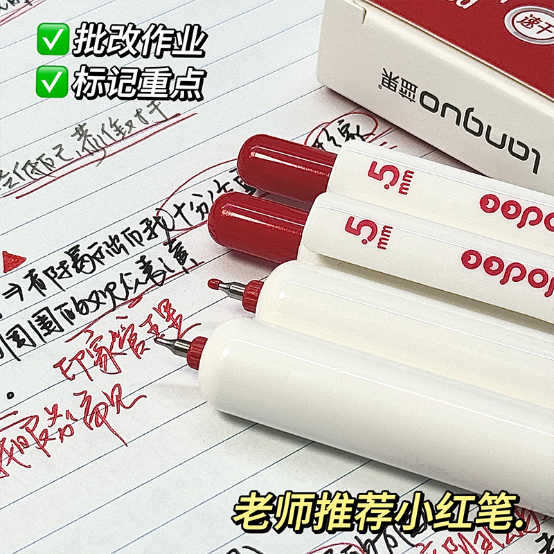 蓝果新升级兜兜防丢笔小红笔速干CS头按动迷你中性笔老师用ins高颜值0.5刷题改考试作业红笔黑笔重点标记教师
