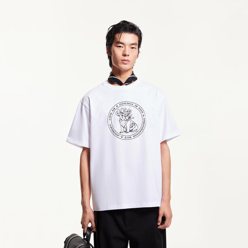 杰克琼斯男装男士短袖T恤男款打底衫夏季常规复古法斗印花罗纹