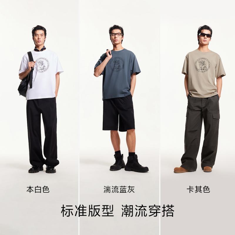 【凉感】HLA海澜之家蛇年贺岁系列25夏新发财大码短袖T恤上衣男装