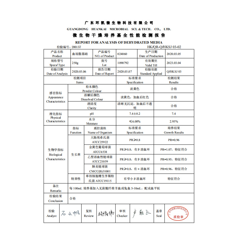 环凯微生物 血琼脂基础培养基250g 细菌培养及溶血实验干粉培养基