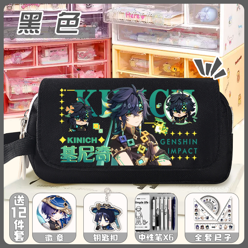 原神笔袋散兵阿蕾奇诺文具袋初中小学生二次元大容量双层铅笔袋