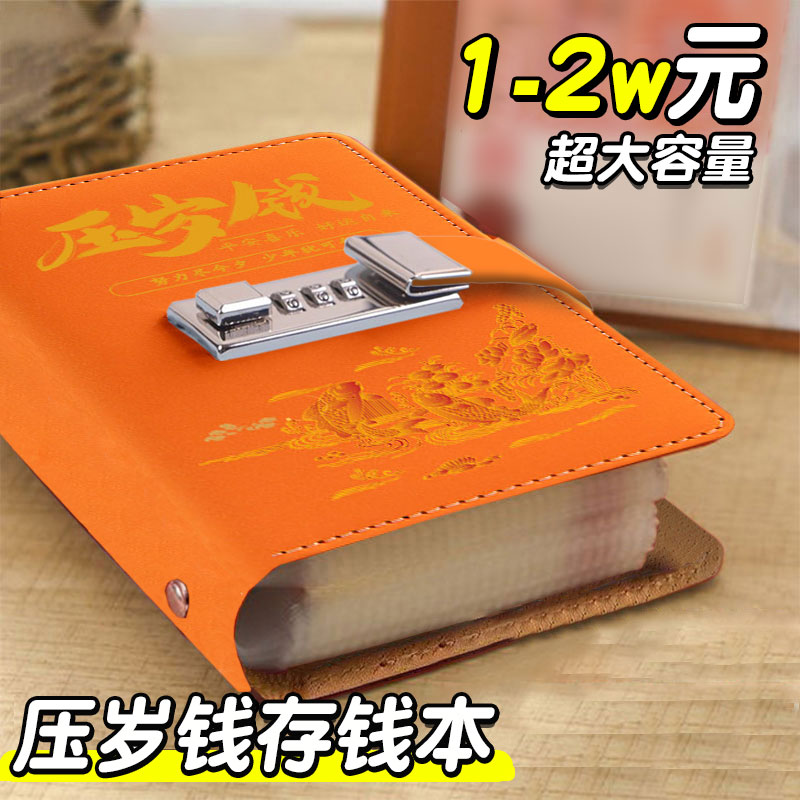 一万元压岁钱现金存钱本密码锁暴富存钱夹钱册2024年大容量只放钱网红攒钱可放10万理财纸币百元钞票册袋收纳