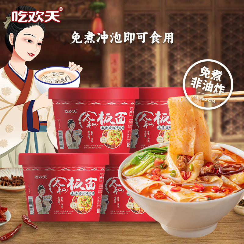 吃欢天安徽太和牛肉板面桶装擀面免煮冲泡速食方便面泡面整箱小面