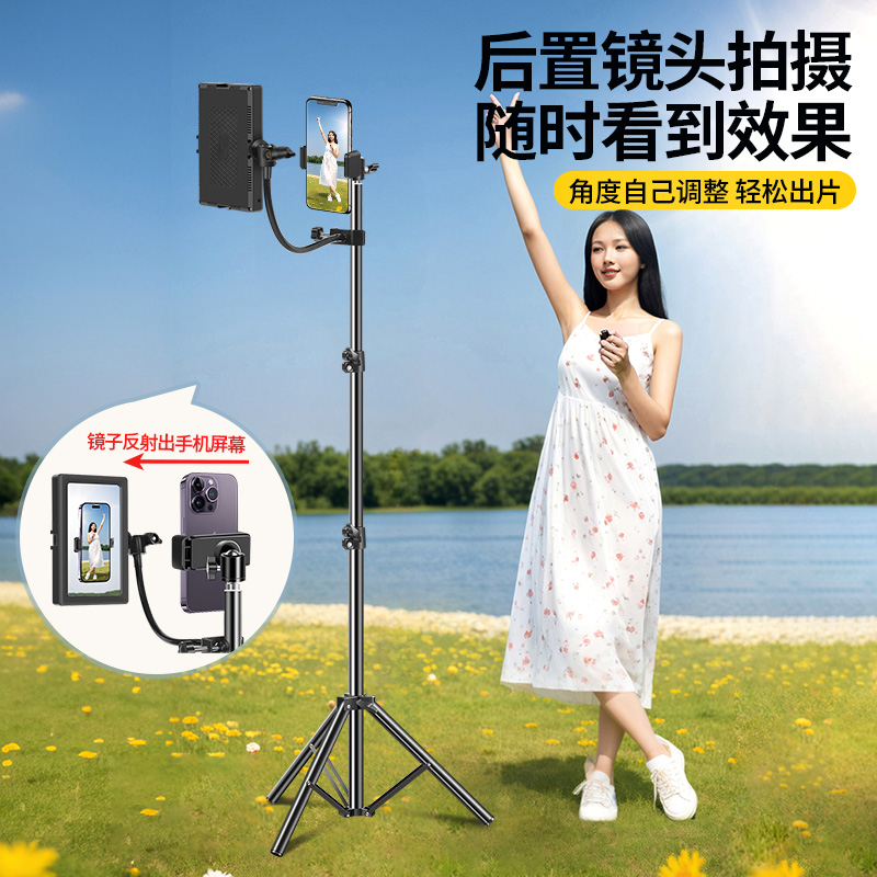 手机镜后置镜子折射翻转反向自拍拍摄后置视频直播镜摄像头手机支架2025新款三脚架蓝牙遥控