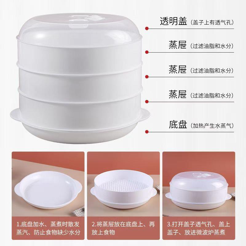 微波炉专用蒸笼加热圆形家用食品级耐高温多功能带盖一体蒸笼