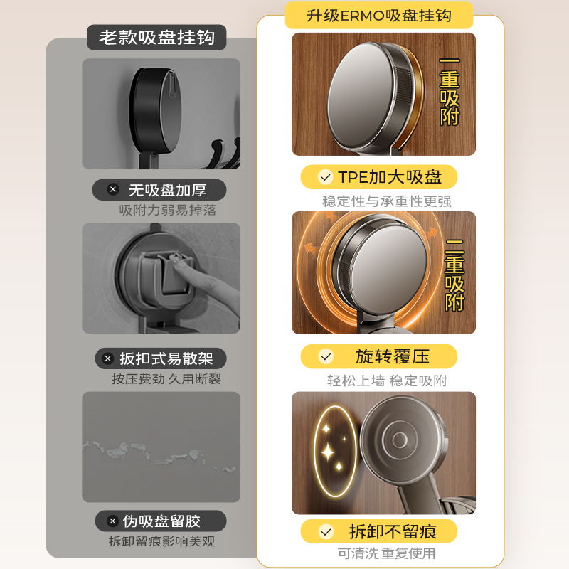 吸盘挂钩真空强力无痕收纳免打孔粘钩家用浴室厨房门后卫生间吊钩