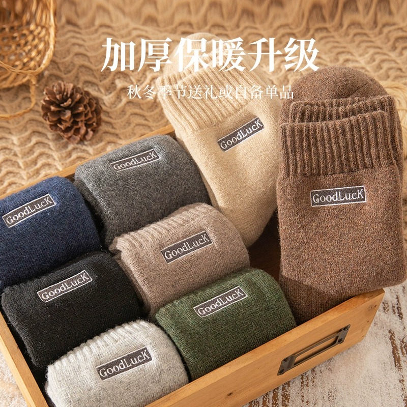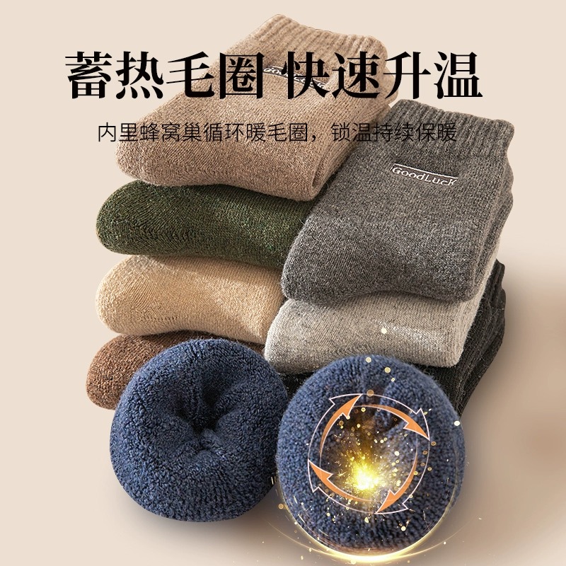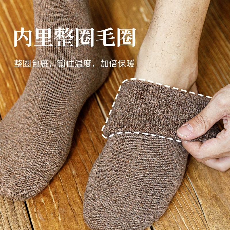 加厚袜子男士秋冬款中筒袜保暖毛圈袜纯棉防臭雪地长袜居家地板袜