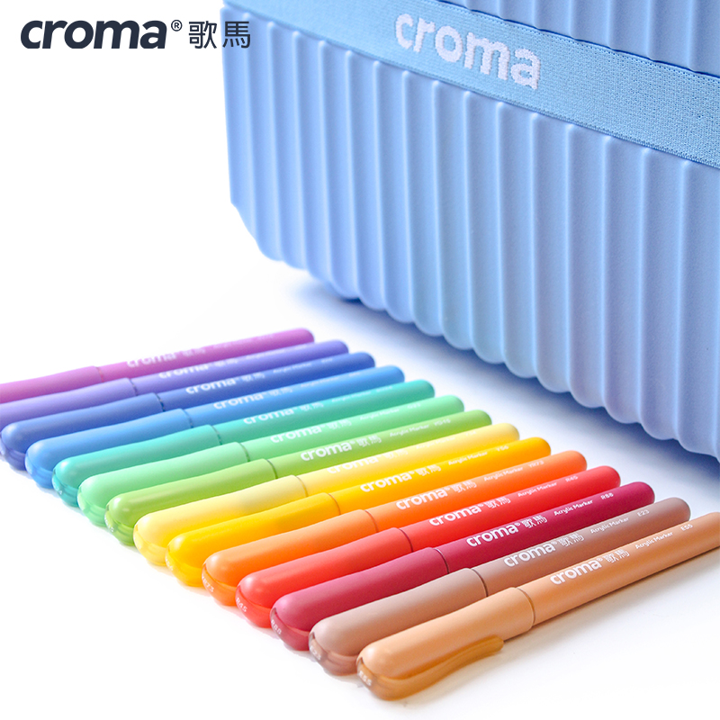 歌马croma可替换墨囊直液式软头丙烯马克笔套装小学生美术专用不透色可叠色160色可水洗儿童无毒防水水彩画笔