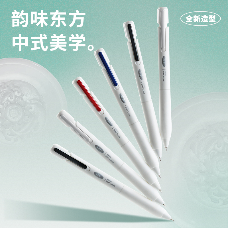 一木林汉玉白按动中性笔高颜值刷题笔速干CS笔头学生黑色水笔简约顺滑好用的黑笔专用签字笔蓝色红色圆珠笔芯