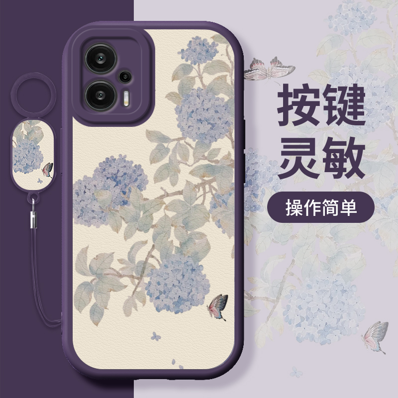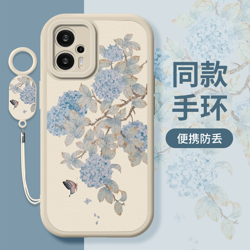 绣球花画适用红米note12turbo手机壳小米note12pro十+新款极速版小羊皮note12tpro高级note12r简约5g女保护套