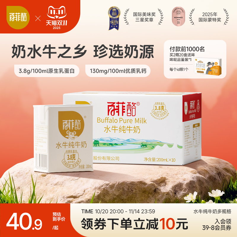 【万人团补贴】百菲酪水牛纯牛奶200ml*10盒水牛奶早餐学生儿童奶
