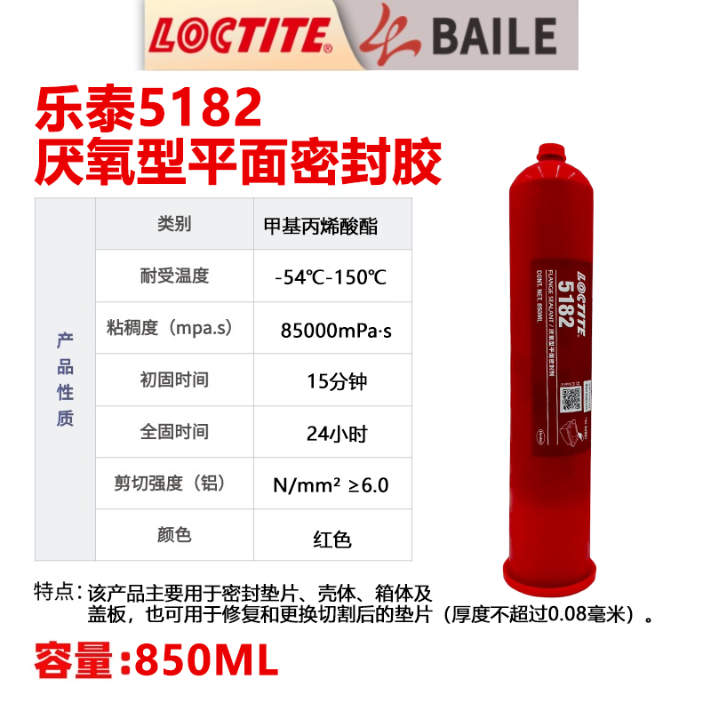 乐泰5182平面密封胶厌氧胶 快速固化中等强度触变性易施涂密封修复更换垫片 现货