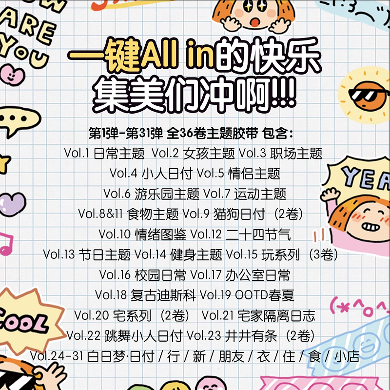 分装合集-琳榔头和纸胶带手账装饰可爱女孩人物手帐拼贴材料排版