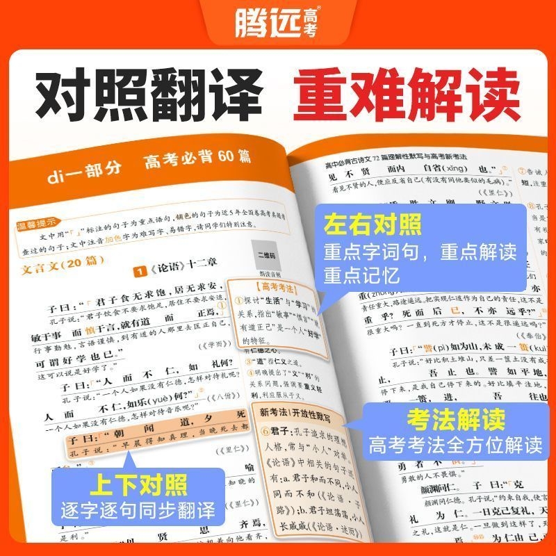 2026腾远高考高中必备古诗文72篇理解性默写与新考法万唯人教文言文解读训练新版常识文化考点积累