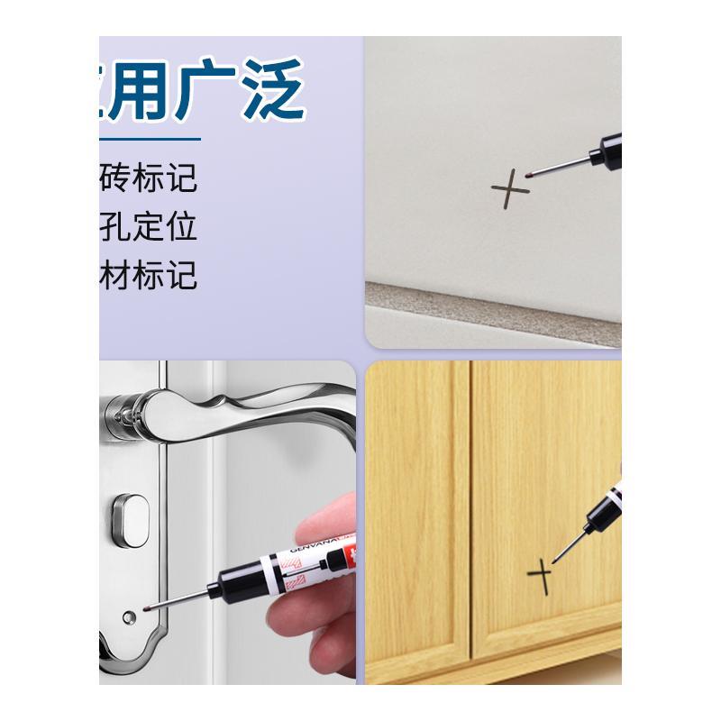 长头记号笔油性工地专用木工划线笔速干防水防油不掉色加长特殊用途瓷砖画线深孔细头长嘴黑色打孔石笔标记笔