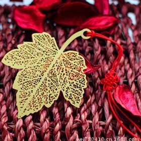 中国风书签创意精美金色细纹树叶脉金属树叶镂空书签商务礼品书签