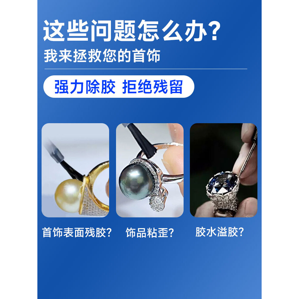 富崎天然珠宝解胶剂专用溶解玉石手镯戒指表面残胶强力万能清理diy首饰吊坠手牌无毒不伤手钻石戒指耳饰拆卸