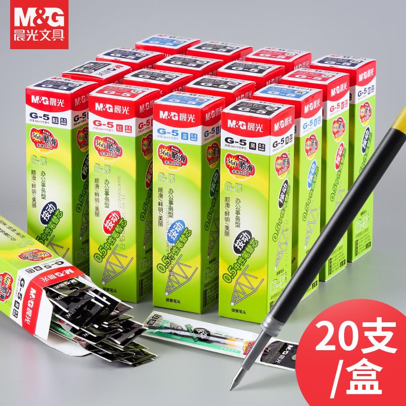 晨光g5按动笔芯0.5黑色子弹头k35替芯红色蓝水笔芯护士墨蓝处方学生刷题考试速干g-5按压弹簧笔芯批发