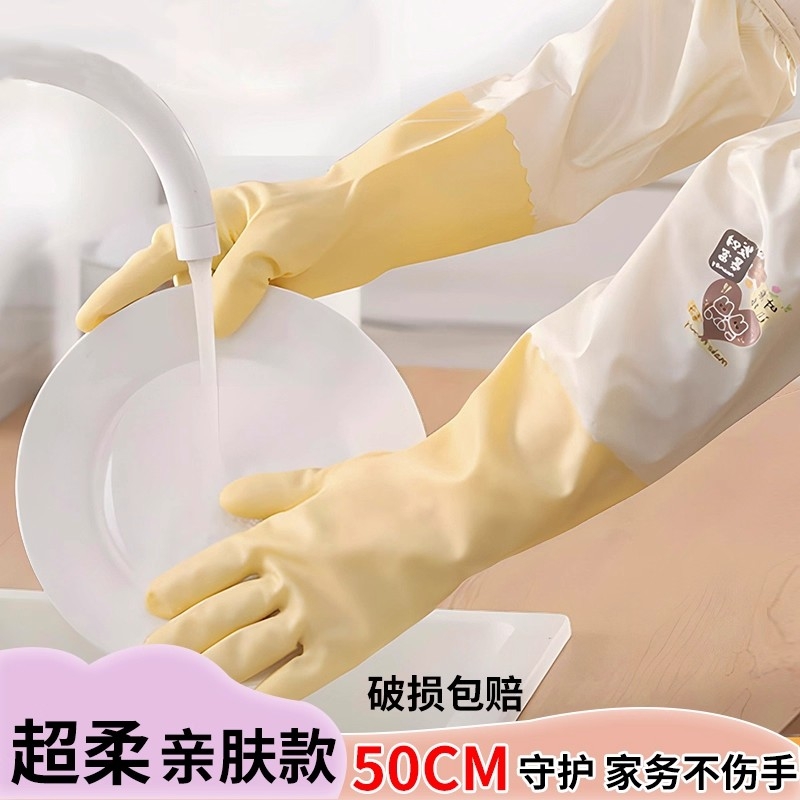 加长洗碗手套家务厨房耐用防水橡胶加绒加厚清洁乳胶洗衣服专用的