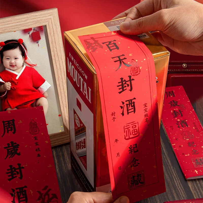 宝宝周岁封坛酒封酒贴纸手足印满月封酒条标签百天百日龙年封酒专用套装相框百岁藏酒生日抓周宴纪念存酒封贴