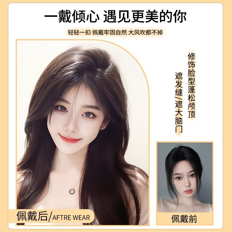 假发女片头顶全真发遮白发补发蓬松增发量无痕刘海补发片前额遮盖