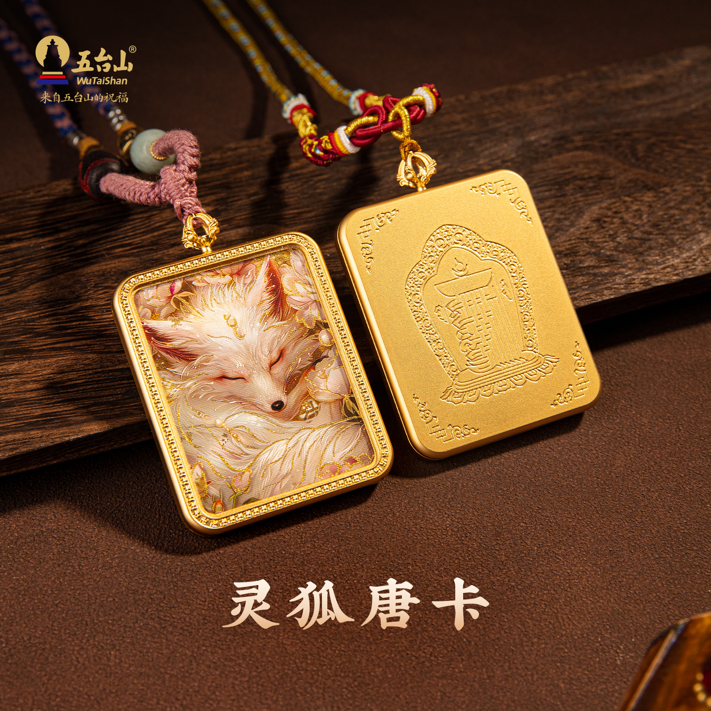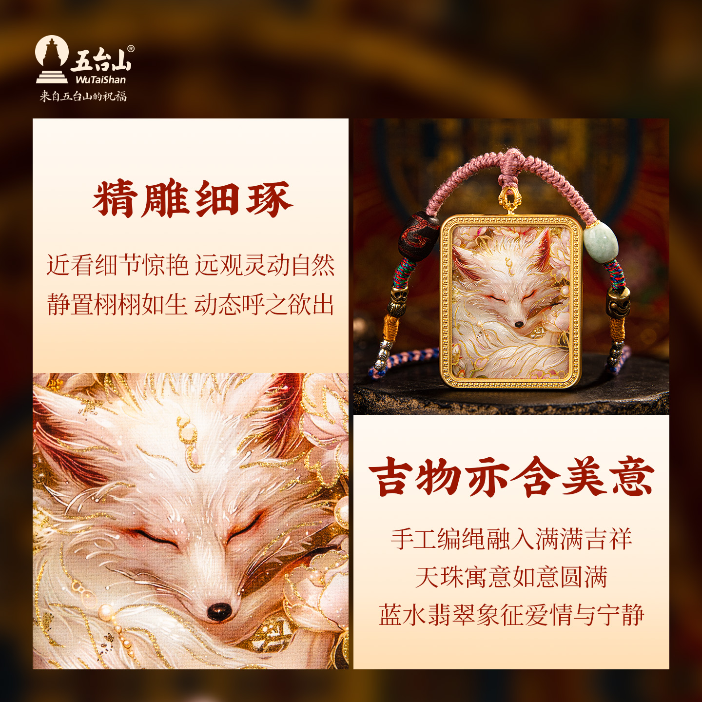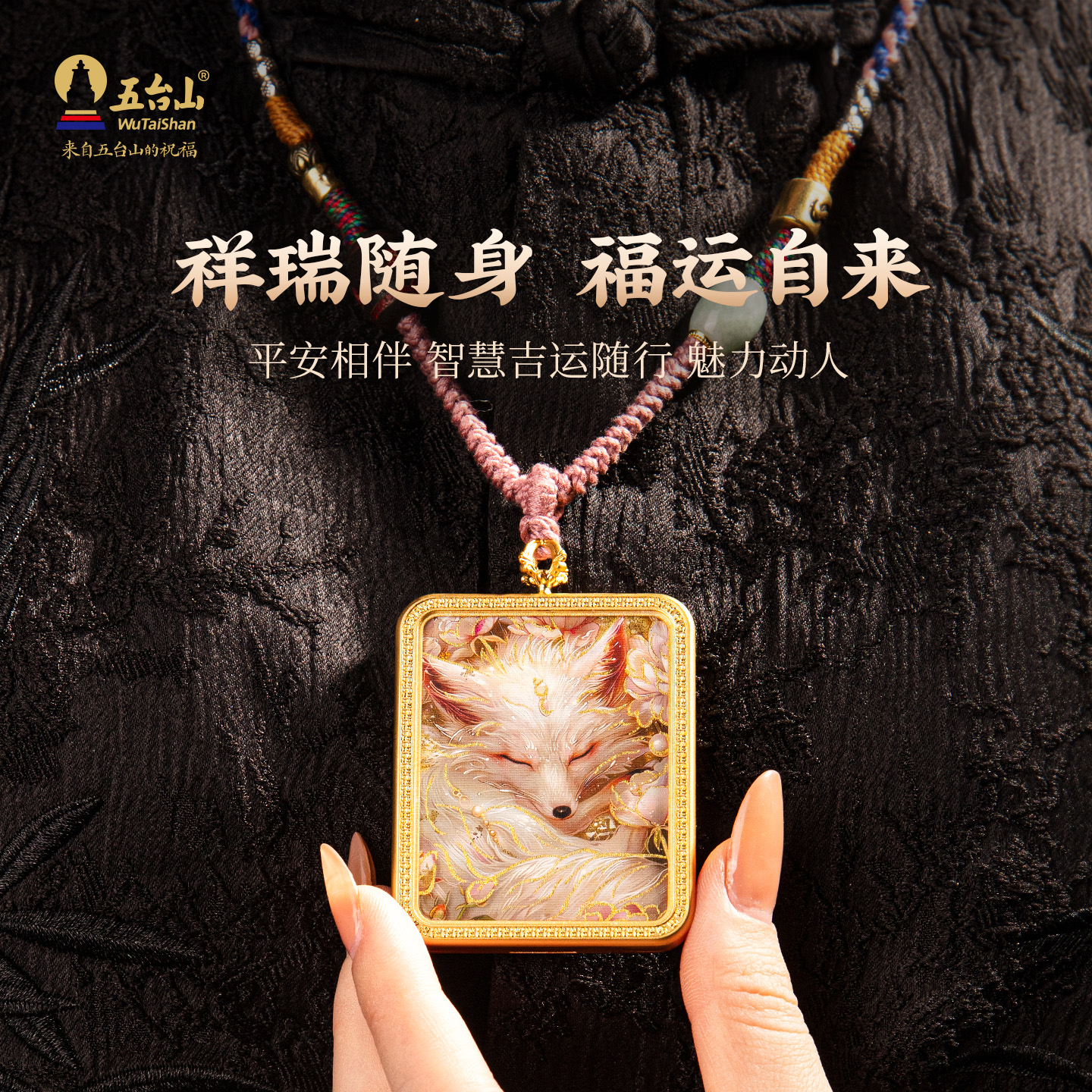 五台山九尾狐招桃花半手绘唐卡项链翡翠转运珠毛衣链