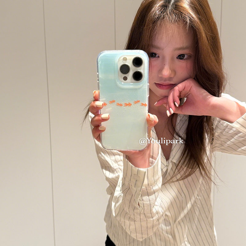 由里公园ins小众少女夏日清新晕染金鱼15适用16pro苹果16ProMax手机壳iPhone16全包14新款14Promax保护套13韩